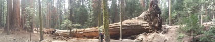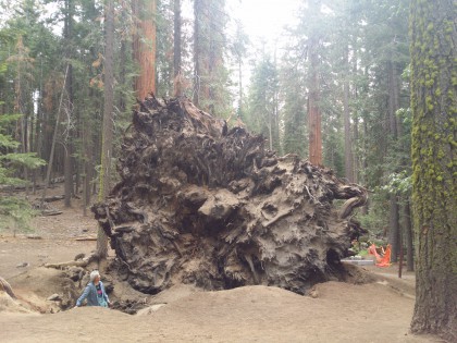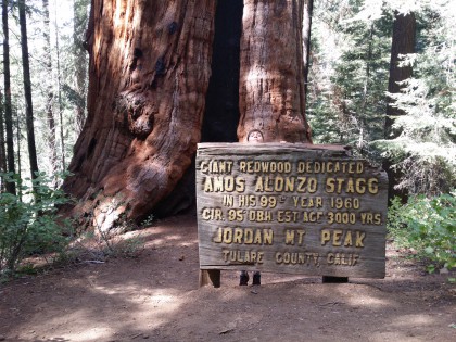 3. Que tu es à trois heures et demie de route (sinueuse, montagnarde) du General Sherman Tree, plus grand séquoia du monde et star de Séquoia Park (heureusement, dans ce coin du parc il y a l’Amos Alonzo Stagg Tree, baptisé en hommage à un fameux Capitaine d’équipe de football américain (?!), 81% en volume du Gen. Sherman, 6eme plus gros séquoia du Monde Entier (voir les photos quand on aura assez de réseau Wifi pour les poster), et aussi le Trail of the 100 Giants, on en reparlera.)