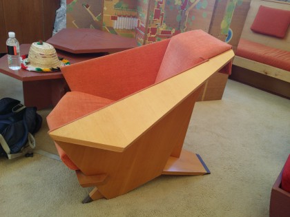 C’est ce qui rend cette visite si émouvante : au-delà de la découverte de cette architecture impressionnante, on comprend que chaque espace, chaque objet sont le fruit empirique d’un projet pédagogique total. Par exemple, les fauteuils du salon (« origami armchairs ») ont été imaginés par Wright à partir de découpes triangulaires effectuées dans une seule planche de bois rectangulaire puis assemblées entre elles. Après en avoir conçu les plans, Wright demanda à ses apprentis de découper les planches selon ses directives et de construire chacun un fauteuil, afin d’exercer leur capacité à visualiser mentalement un objet en 3D.