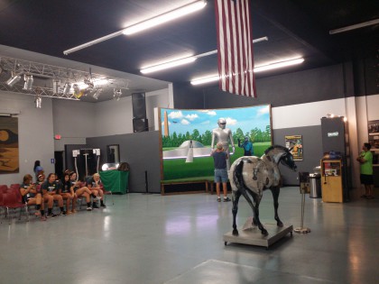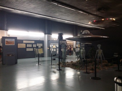 Précisons que Carrizozo, entre autres coups de chance, est située à 50 miles de Trinity Site, où la première bombe nucléaire a été testée en juillet 1945. La ville a ainsi reçu une part abondante des bienfaits du champignon atomique subséquent. Elle est également bordée par un fragment du White Sands Missile Range, et un panneau sur la Highway 380 nous prévient que la route risque à tous moments d’être fermée en cas de d’exercice de tirs. Apparemment, c’est aussi une piste d’atterrissage de secours pour les navettes de la NASA. On n’est pas très loin de Roswell, vers où nous roulons en ce jeudi 20 août après notre détour texan.